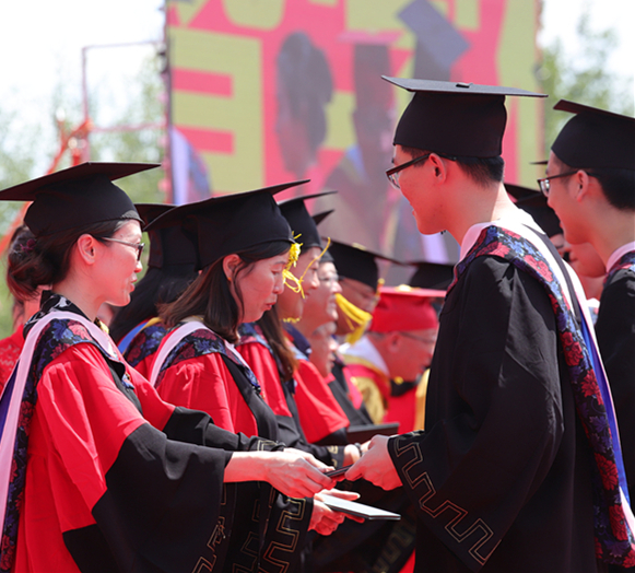 四载励志求学,一朝鲲鹏展翅。在学位授予仪式中,主席台上的学术委员会委员们为每一位毕业生颁发学位证书、拨正流苏并合影,台下15位摄影师将每一位同学身影定格为永恒。