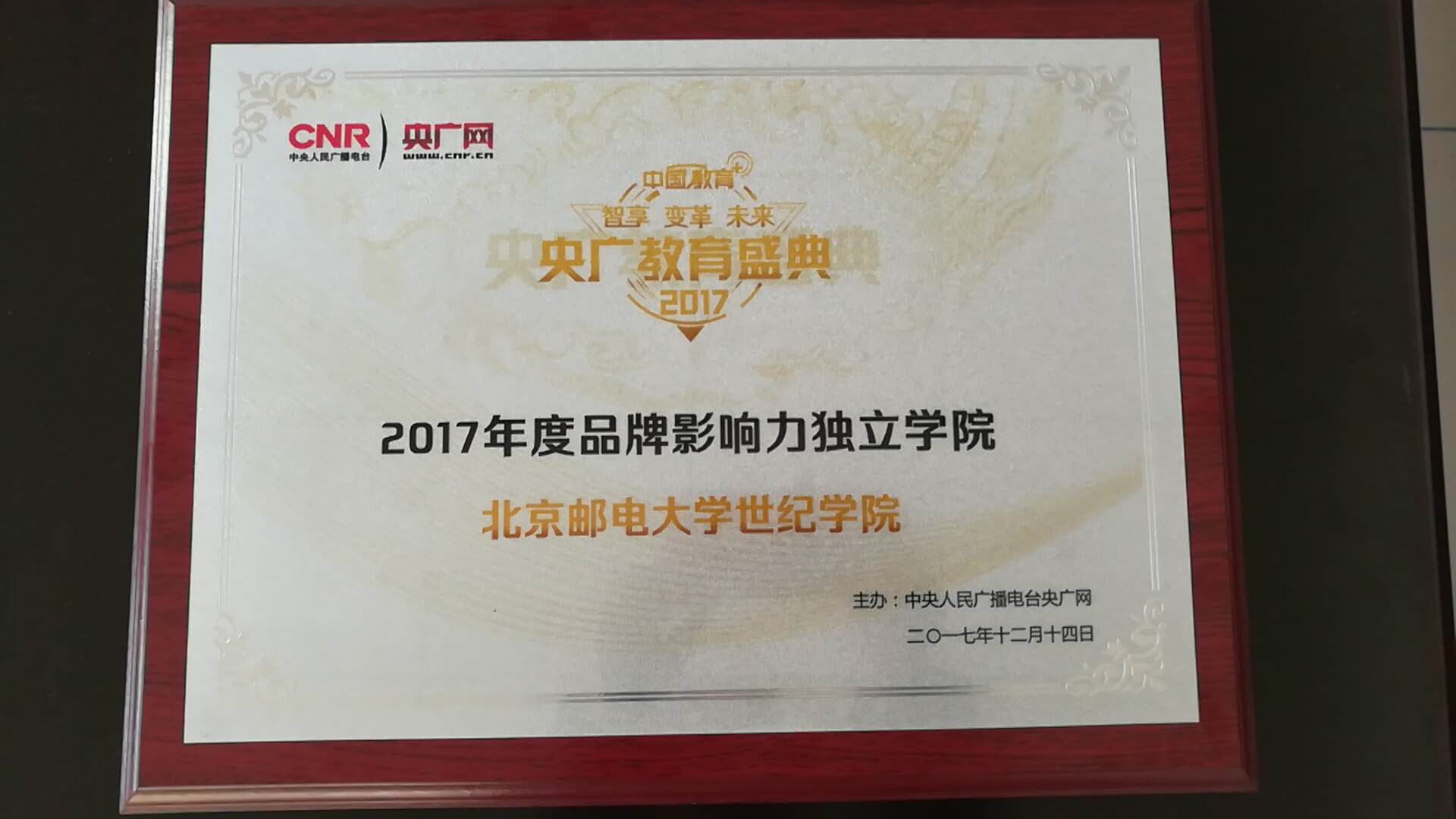 近日,由央广网主办的2017央广网教育峰会暨央广教育盛典在北京隆重举行,我院受邀参加并荣获了“品牌影响力独立学院”称号。