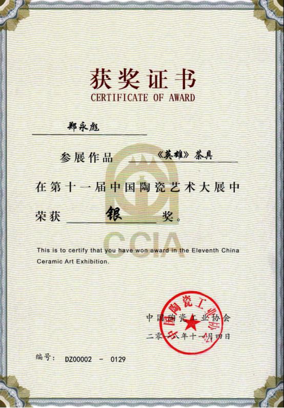 近日,在第11届中国陶瓷艺术大展中,学院文化创意产品研发中心主任、艺术与传媒学院郑永彪副教授创意设计的《英雄》茶具喜获银奖(国家级)。