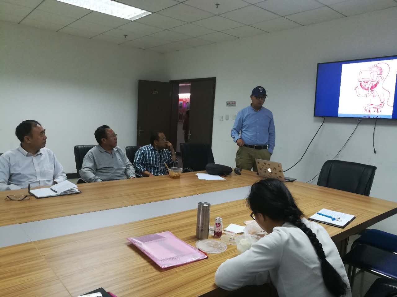 马天容老师以VR与设计原则为主题,对VR的起源、发展与未来进行了清晰的梳理和展望,就VR的应用领域和体验途径进行了实例分析,并根据自己所带团队成长的过程,分享了科技创新项目建设、团队建设的经验和体会。最后,他指导教师们亲身感受了VR世界。