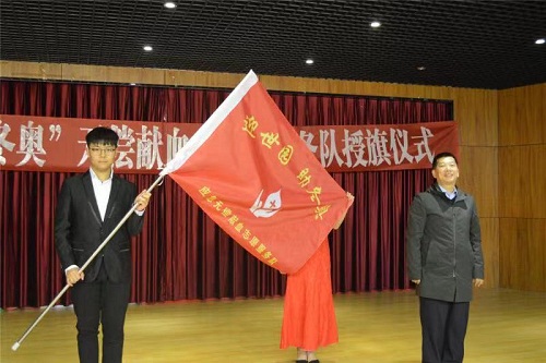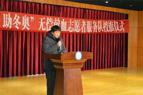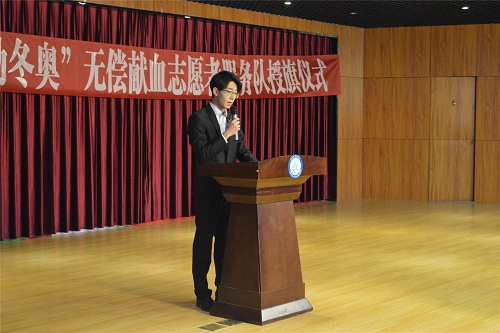 12月5日下午,“迎世园,助冬奥”主题献血暨无偿献血志愿服务队授旗仪式活动在学院学思楼127报告厅举行。