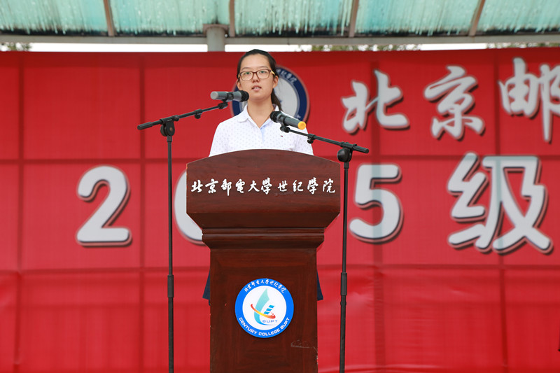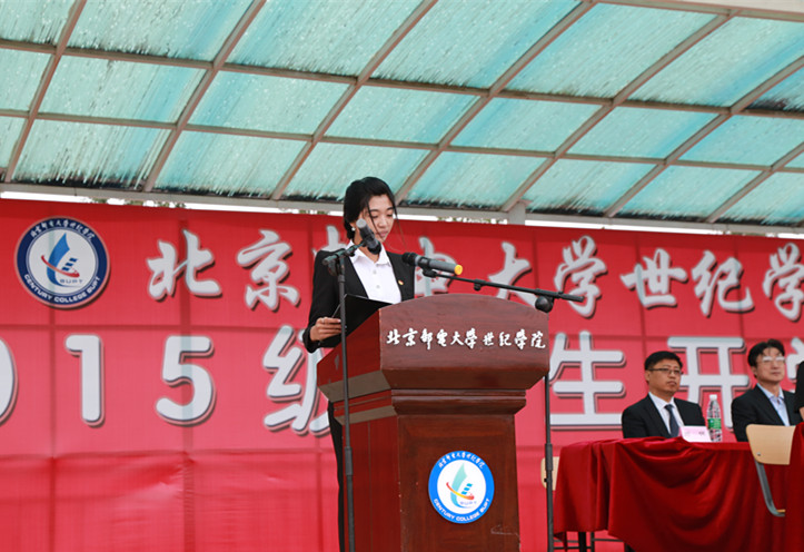 在校生代表李晓萌同学结合自己的经历为大家描述了即将走进的大学,她鼓励学弟学妹们要珍惜大学时光,打好专业基础、增强创新能力、挑战自我、超越自我。新生代表宿一凡同学则在发言中呼吁新同学们脚踏实地、严以律己,同奋斗共收获,努力成为世纪的骄傲。