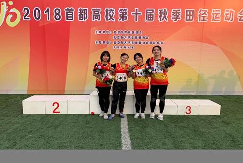 10月20-21日,学院田径代表队在第十届首都高校秋季大学生田径运动会中取得优异的成绩,有10余名同学在接力、铅球、跑步等比赛中获奖,其中,何月琳、吴笛、王琪、赵丽明同学获得4x400米第一名、4x100米第三名,团队获得女子团体总分第四名。