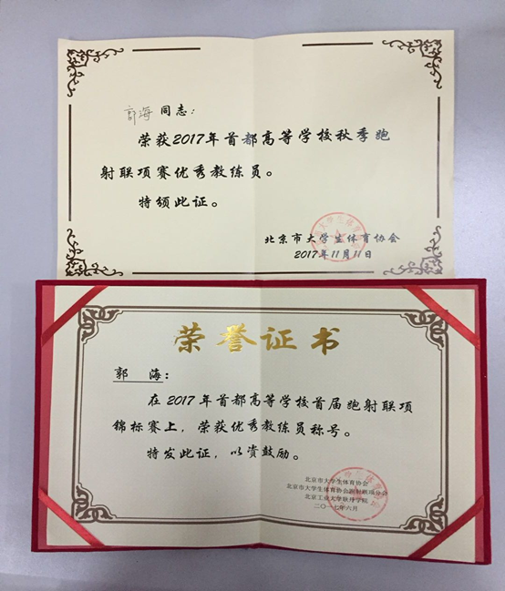 11月11日,在2017年全国高校第二届跑射联项锦标赛中,我院田径队获得团体总分第四名、4x400米接力比赛第二名、男子2x400米第三名、女子3x800第五名和男子3x800第七名的好成绩,基础教学部郭海老师被组委会评为“优秀教练员”。