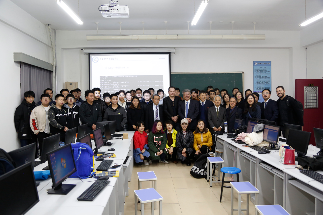 与软件工程专业学生合影