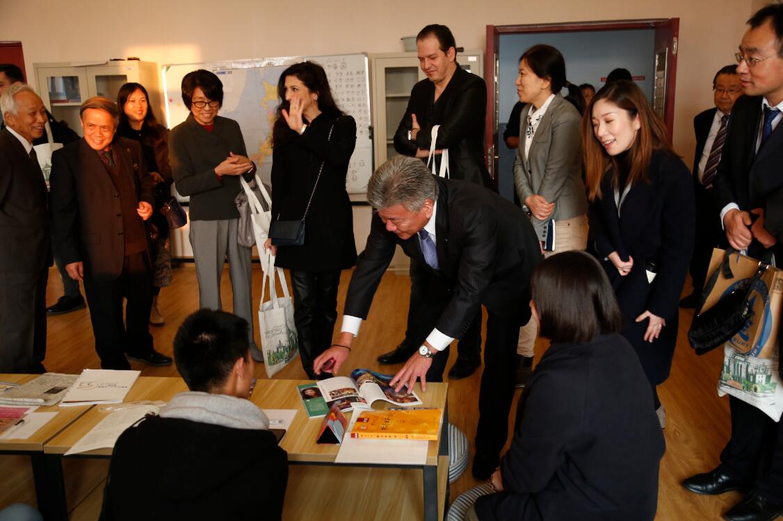 随后,长谷川 亘理事长一行在孙汉旭院长的陪同下前往行知楼与软件工程专业学生见面,理事长鼓励学生多学多问,在中日文化交流室,与日语社的同学们用日语进行了交流,来宾对学生们的日语能力给予的很高的评价。代表团一行还参观了数字媒体实验室,对学生们的作品赞不绝口。