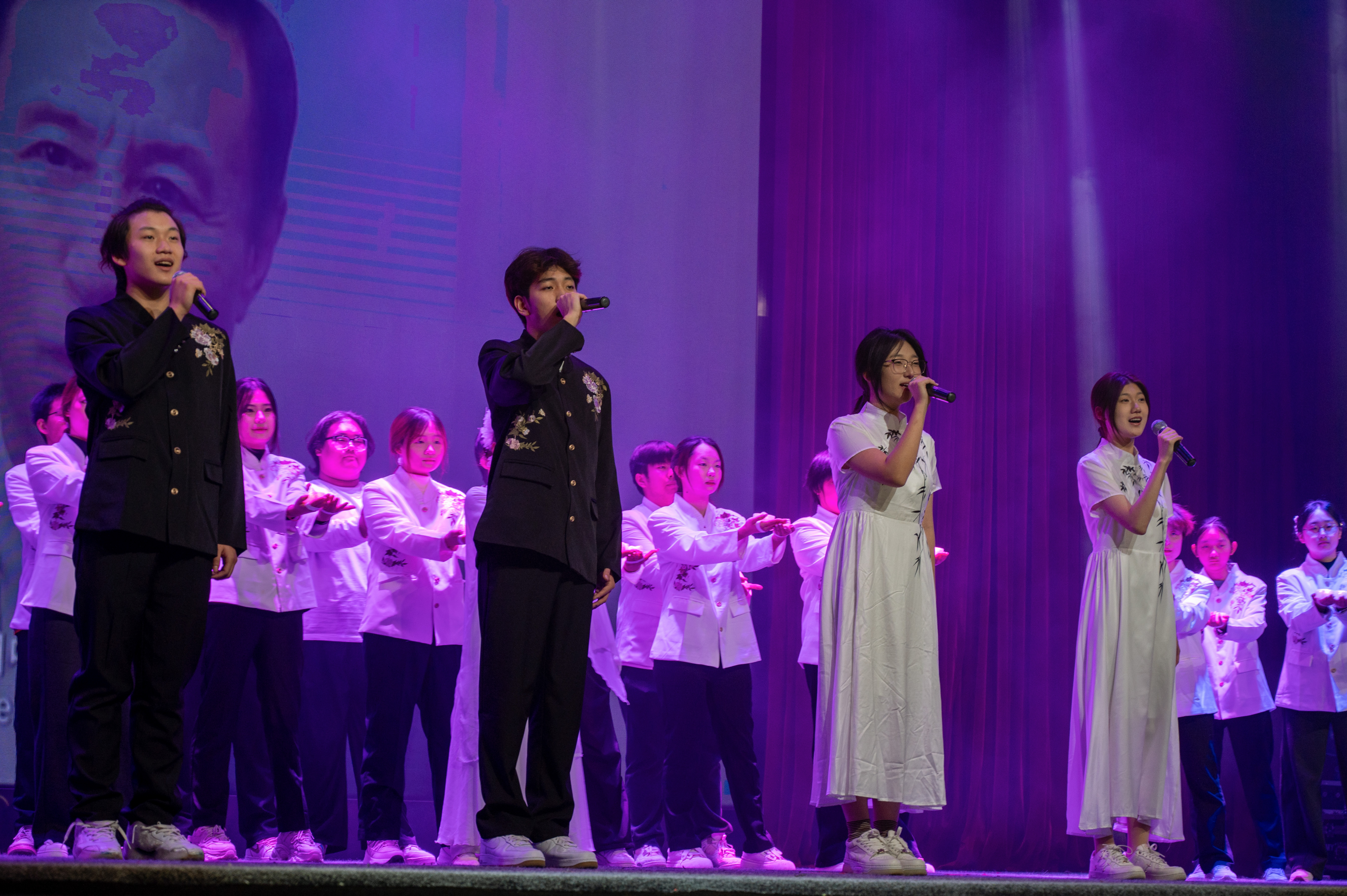 第二篇章“奋斗逐梦行” 展现新时代青年担当。经济管理系情景剧《大地诗行与未来交响:辛家堡的双重奏》,讲述青年扎根基层的奉献故事;大学生艺术团舞蹈队《彩云之南》《绿光》尽显青春灵动;自动化系武术《武韵》刚劲有力,彰显少年意气;外语系《紫金花盛开》、计算机科学与技术系《我的未来不是梦》将个人理想与时代脉搏相连;大学生艺术团合唱团以《落叶归根》《红旗飘飘》收尾,悠扬旋律让爱国与奋斗的主题深入人心。