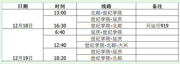 1、停发12月18日16:30,世纪学院→大兴班车。