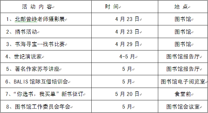 为了进一步提升图书馆的服务质量和水平,吸引广大师生充分利用图书馆,图书馆将举办以“阅享时光,积淀梦想”为主题的图书馆2015年度读书活动月活动。