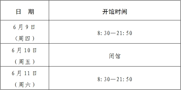 注:6月12日起正常开馆