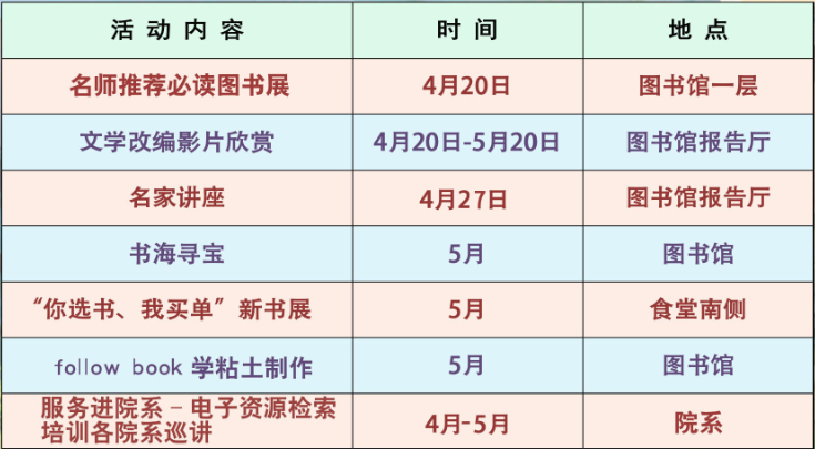 “阳光可补钙,四月读书天”,为了迎接2016年“世界读书日”(4月23日)的到来,深化以读者为中心的服务理念,在更好展示图书馆文献信息资源的同时培育读者利用图书馆及馆藏数字资源的能力,突出对话与沟通。图书馆将举办以“书香校园,阅读世纪”为主题的图书馆2016年度读书活动月大型宣传活动。
