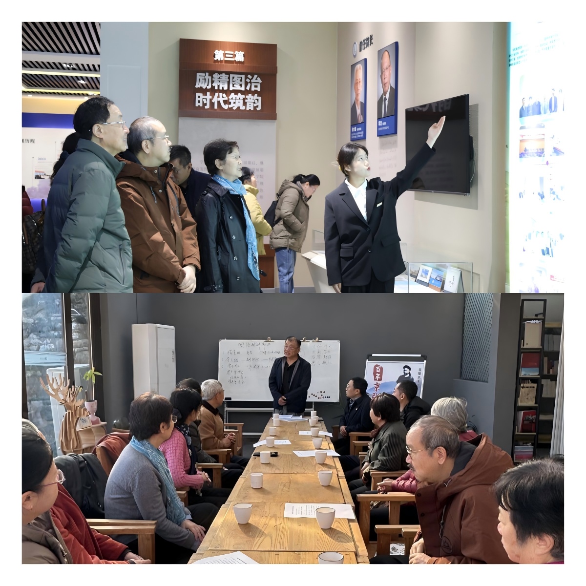 座谈会后,双方共赴石峡村开展实地学习,深入了解村庄乡村振兴、基层治理及长城保护的实践成效。世纪学院关工委外聘属地“五老”宣讲团成员、八达岭镇原副镇长贺春带领大家集体学习了习近平总书记给石峡村的回信精神,并围绕回信精神与长城文化作专题宣讲,让大家进一步感悟其中的为民情怀与时代价值。