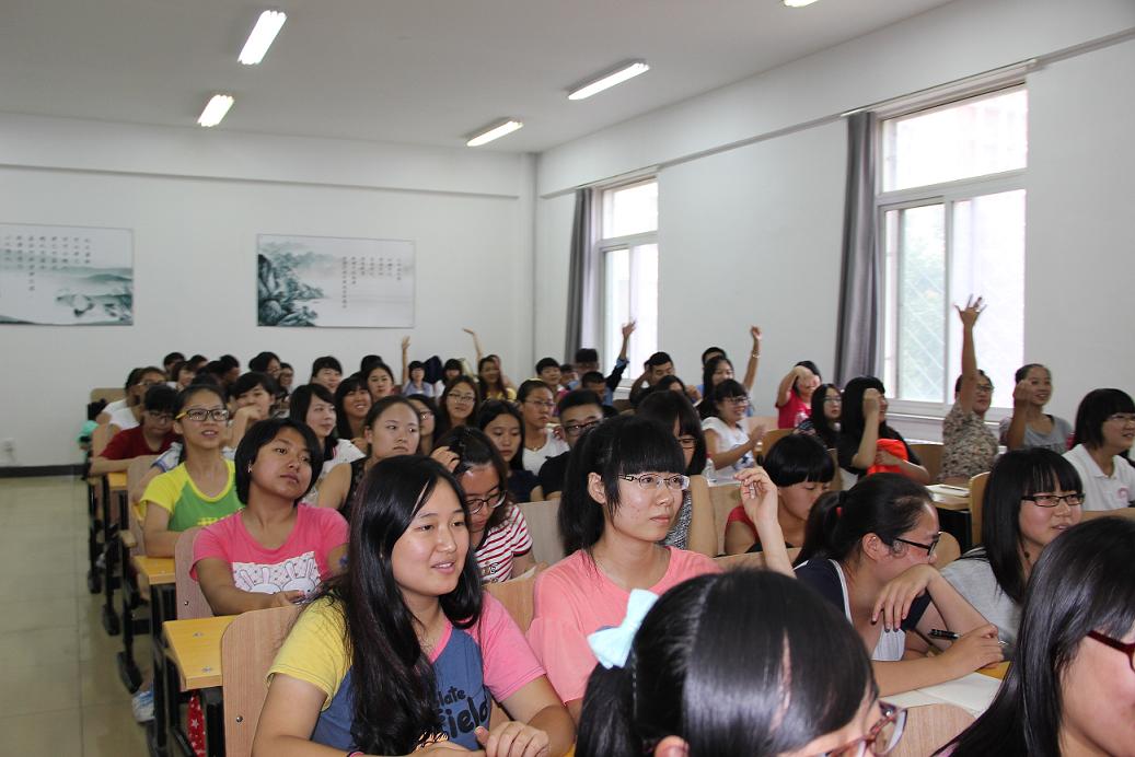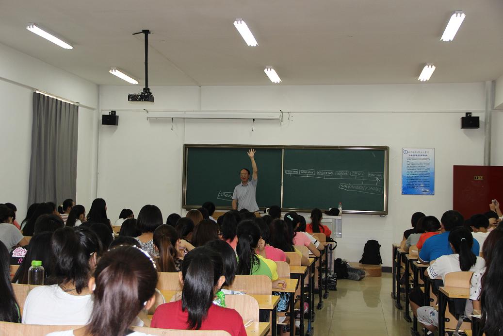 2014级新生带着迷茫、崇拜的眼神仔细的聆听着演讲,还不时将重要的信息记录下来。黎日忠先生在讲座中一直不忘和讲台下的同学们互动交流,风趣诙谐的语言使教室里不时传来阵阵笑声。随着讲座的进行,同学们眼中的迷茫不见了,更多的是对专业的憧憬和期盼。最后的提问环节,大家纷纷上台提出问题,黎日忠先生和随行的于薇薇老师耐心的为大家解答疑问。