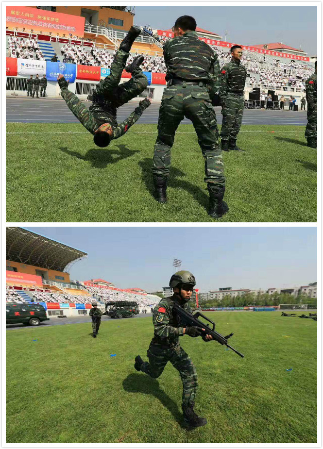表演结束后,同学们争相与仪仗大队队员、特战分队队员进行互动交流。市征兵办、市教委、海淀区征兵办和北航工作人员向参加活动的师生发放征兵宣传资料、解读政策法规,积极介绍军兵种知识、征兵条件标准和优待政策,我院学生参军热情十分高涨。