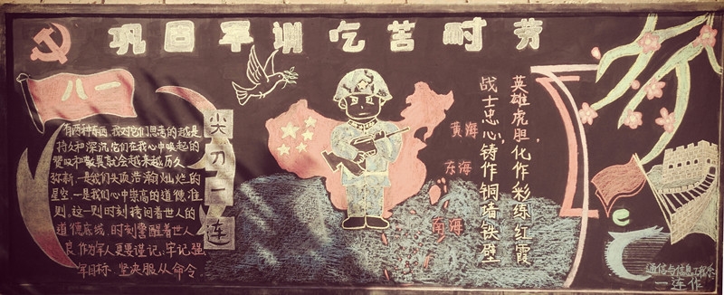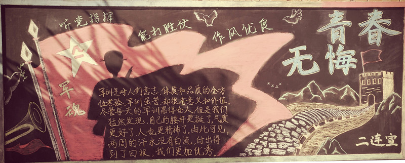 此次各连队的板报各具特色:团部将“军训精神”与“世纪人”相联系;一连板报结合国家时事热点;二连板报以“军魂”为主题;三连“龙火三连,烈火燎原”的主题新颖而有气势;四连以“涅火凤凰”自喻;五连“军中绿花”十分契合连队特色。