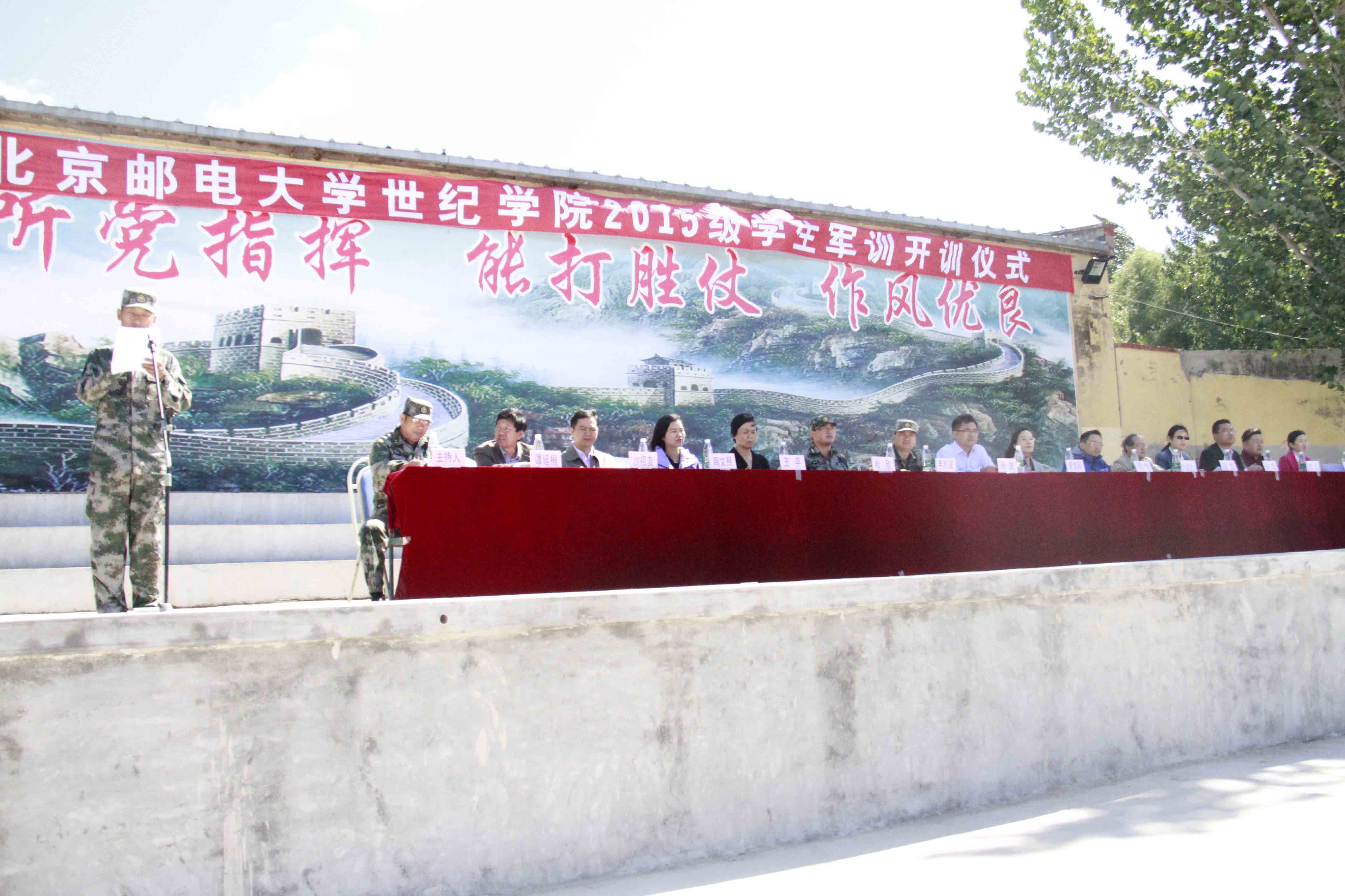 2015年9月12日上午10:50,北京邮电大学世纪学院2015级新生军训开训典礼在八达岭军训基地隆重举行。
