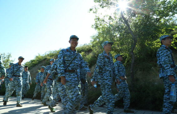 早晨7:30,本次野外拉练军正式出发。行军穿行在村庄、青山间,同学们保持着整齐的队形,饱含激情的军歌声此起彼伏,为漫长的拉练路途增添了一抹欢笑。当全体学员抵达目的地时,大家虽有疲意,但脸上都洋溢着一份成就感。稍事休息后,队伍原路返回军训基地。