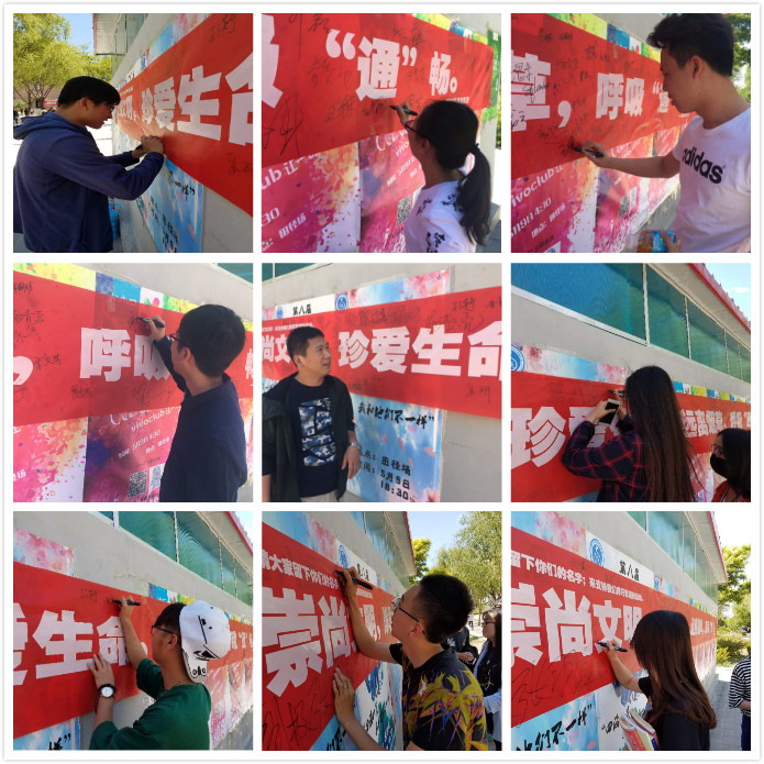 活动中,广大师生积极在宣传条幅上签下自己的名字,并承诺加入戒烟和控烟队伍中。条幅上布满了大家的名字,体现出了师生们对禁烟的坚定决心。
