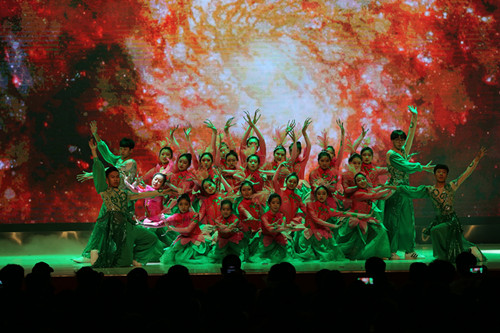 中场时分,学生乐队新编歌曲《向阳花》《西游记》激情四射,积极向上的青春气息将整场晚会的气氛推向高潮。经济管理系的歌舞剧《永远的长征》,以生动的画面完美重现了长征的艰辛历程,由衷地表达了对革命先辈的缅怀之情。合唱团深情演绎《You raise me up》,唱出了广大师生对学院的热爱以及对青春的追逐。由经济管理系、计算机科学与技术系及艺术与传媒学院联袂表演的民乐舞蹈《美人吟》,将民乐与古典舞蹈融为一体,为现场观众带来了听觉与视觉的双重盛宴。随后由通信与信息工程系的丁安琪、电子与自动化系的马一铭、郭越以及外语系的龙琳兮等同学表演的歌曲串烧再一次点燃了晚会的气氛,现场掌声雷动。Daway街舞社热舞《The truth》,创意新颖,舞姿动感,获得了现场嘉宾观众的一致好评。整场晚会在院合唱团《在灿烂的阳光下》悠扬的歌声中圆满落下帷幕。