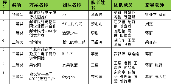 北京邮电大学世纪学院经济管理系学生在本次大赛北京赛区的具体获奖信息如下: