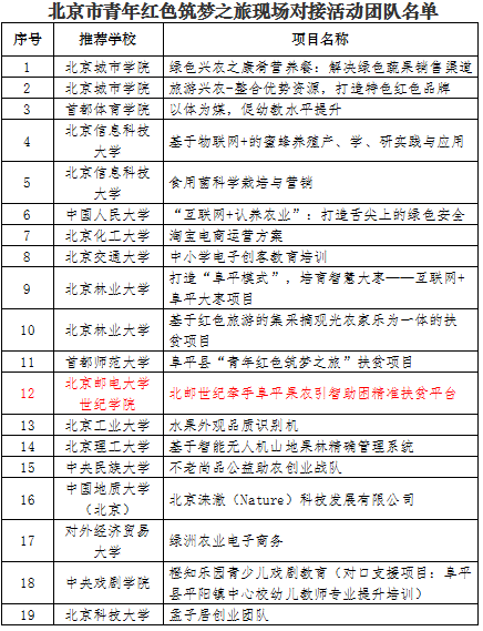 为全面贯彻落实习近平总书记关于“青年红色筑梦之旅”回信精神,学院积极开展北京市组织的“青年红色筑梦之旅”活动,鼓励大学生用创新创业成果服务乡村振兴战略、助力精准扶贫。通信系学生孙昊、李政为代表的项目团队,积极响应习近平总书对“青年红色筑梦之旅”的号召,把红色之旅项目打造成能在阜平红色革命根据地城南庄落地项目,他们利用业余时间,提前深入阜平县城南庄镇调研,充分利用所学知识和专业优势与当地的项目需求进行模式匹配。功夫不负有心人,经过两个多月打磨的“引智助困精准扶贫平台”项目,被北京市教委遴选出来参加赴阜平县对接活动。