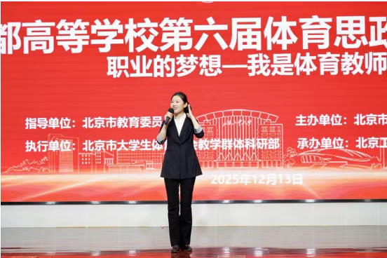 2025年12月13日,在首都高等学校第六届体育思政演讲比赛中,学院体育教师罗航以《热爱与坚守:十年托举》为题,结合十年教学经历与健美操队育人案例,深情诠释体育教学中的思政内涵,从全市24所高校选手中脱颖而出,荣获二等奖。