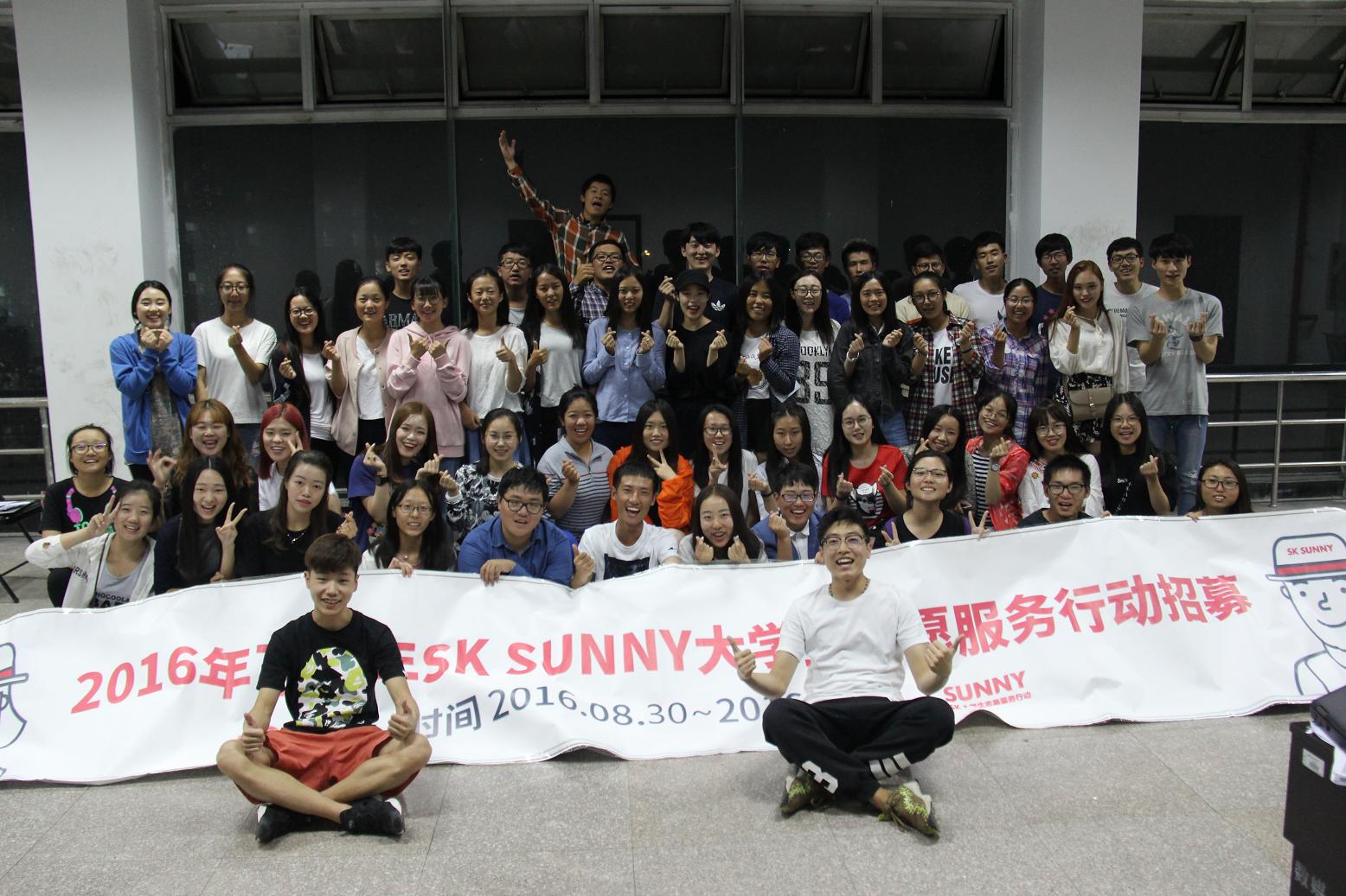 SK Sunny大学生志愿服务行动是SK集团在2003年首先在韩国发起的大学生志愿服务行动,如今已成为韩国最大的青年志愿者服务组织。目前该组织的足迹已经遍布韩国、中国、缅甸、越南、泰国等多个亚洲国家,拥有12万名大学生志愿者。每年有3500名中韩大学生在韩国10个地区和中国5个地区开展活动,创造社会价值。在中国,自2010年成立以来,SK Sunny已发展成包括北京、上海、四川、深圳、江苏五个地区18所大学在内的全国性大学生志愿组织。北京地区包括北京大学、中国人民大学、北京师范大学、中国政法大学、中国农业大学、中国青年政治学院、首都经济贸易大学、北京邮电大学世纪学院8所学校参与。
