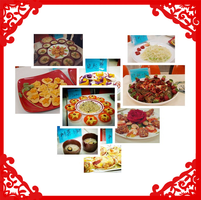 经过1个小时的奋战,新“丝”军、星星之火、一海结盟、小米加步枪、四渡赤水、军民鱼水、烩师披萨、颗颗红星向党、沙场点兵、雪山草地、喜相逢等一道道创意十足、色香味俱全的菜品陆续上桌,吸引了大批师生围观,连食堂大厨们也纷纷拿出手机拍照留念,为之惊叹。