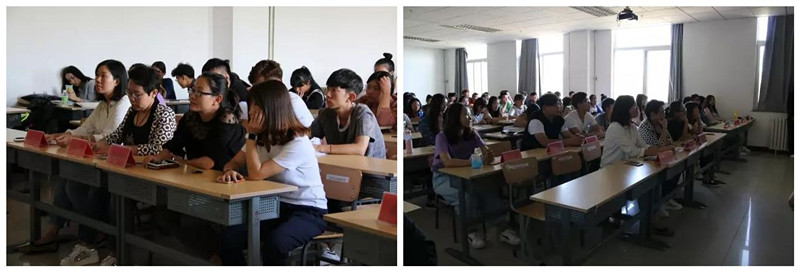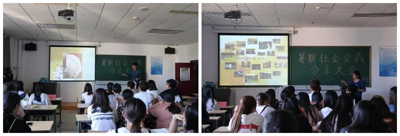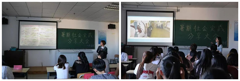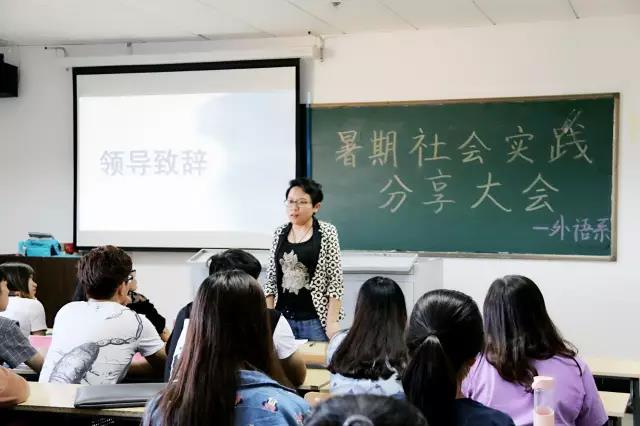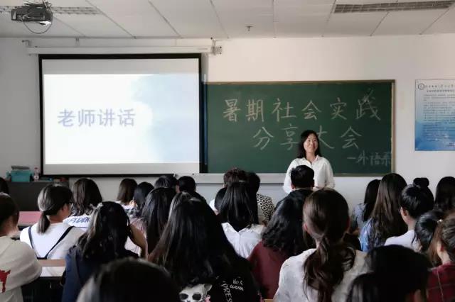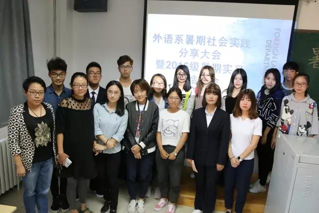 分享会上,2016级的江峰、董兰星用英文+ppt的形式介绍了他们在青岛萤火营地进行的44天暑期专业实习。虽然过程很辛苦,但在活动中社会实践能力、英语口语能力得到极大的提高,生活阅历也更加丰富。随后,2015级的许佳圆、董兆祺分别与大家分享了在少儿机构做助教、在教育机构面试和教学的有益经验。张艳主任对本次专业实习进行总结,传授了丰富的社会实践的经验。