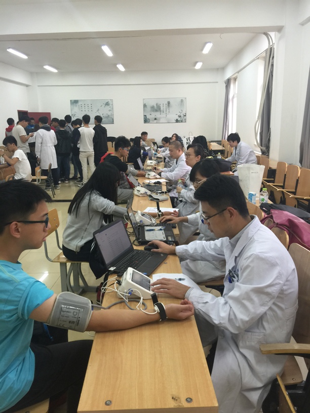因逢阅兵庆典,新生开学较往年偏晚,与北邮校医院其他体检安排冲突,故学院2015级新生报到当天只做了胸部X光检查及PPD测试,剩余项目与2013级学生常规体检合并进行。此次两个年级合并在1天体检,工作量加倍,医务人员责任重大。学院医务室主管梁春香大夫带领通信系、自动化系志愿者连夜布置场地,北邮校医院院长杨大来率队提前一晚抵达,医务人员、志愿者体检当日6:30即全部到位。由于组织得当,充分利用走廊、门厅等空间,志愿者引导有序,学生自觉排队。当日15:00,所有体检项目全部完成。(后勤管理与服务处梁春香供稿)