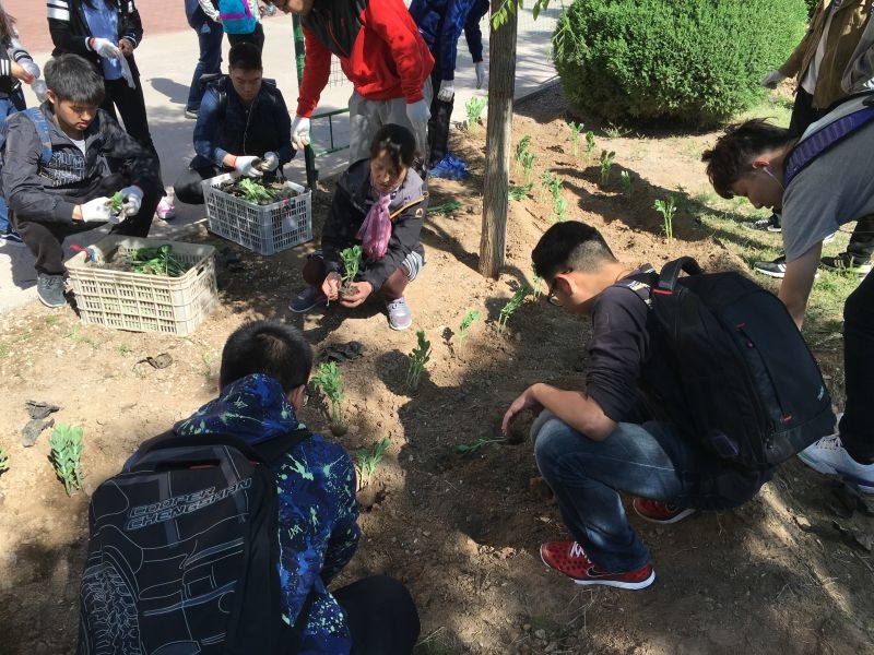 为校园“添绿”活动中,辅导员周龙老师全程参与,后勤处杨光老师全程指导帮助,同学们亲手在校园种下了花苗。
