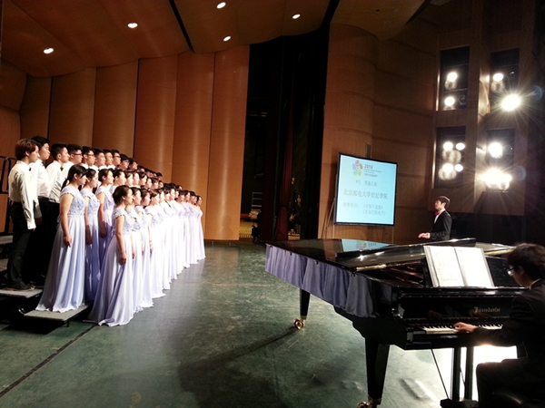 5月31日19:00,2016北京大学生音乐节合唱比赛在中国人民大学明德楼如论讲堂拉开序幕。由于参赛院校较多,比赛分4天举行,我院合唱团在普通高校非专业组中按照抽签顺序是第3天第5支参赛队。