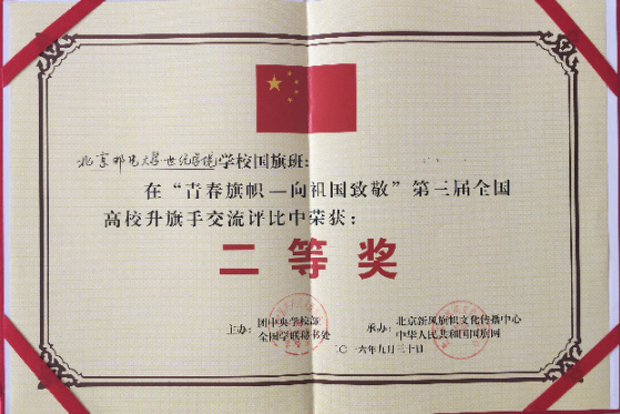 9月30日,在北京市解放军装备学院昌平士官学校举行的“青春旗帜——向祖国致敬”第三届全国高校升旗手交流展示比赛中,我院国旗护卫队取得了二等奖的佳绩。