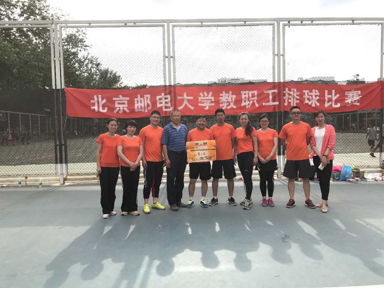 一年一度的北京邮电大学教职工男女混合“软式排球”比赛于2017年5月23日和24日在校排球场分别进行了小组赛与淘汰赛。经过2天鏖战,我院教职工排球队虽未能实现保二争一的目标,但仍备受瞩目,过五关斩六将,夺得季军。院工会主席孙凯亲临现场,为队员加油呐喊。
