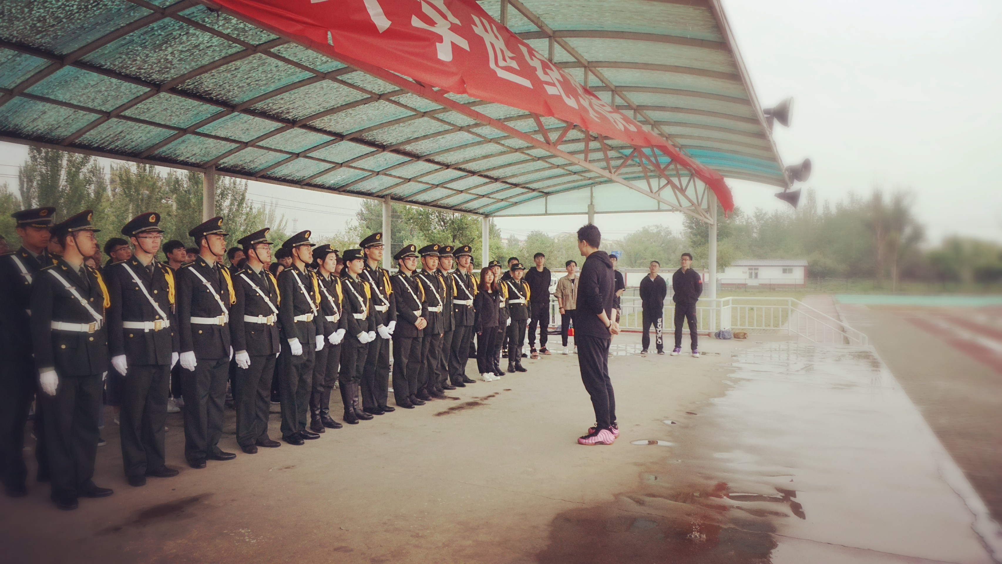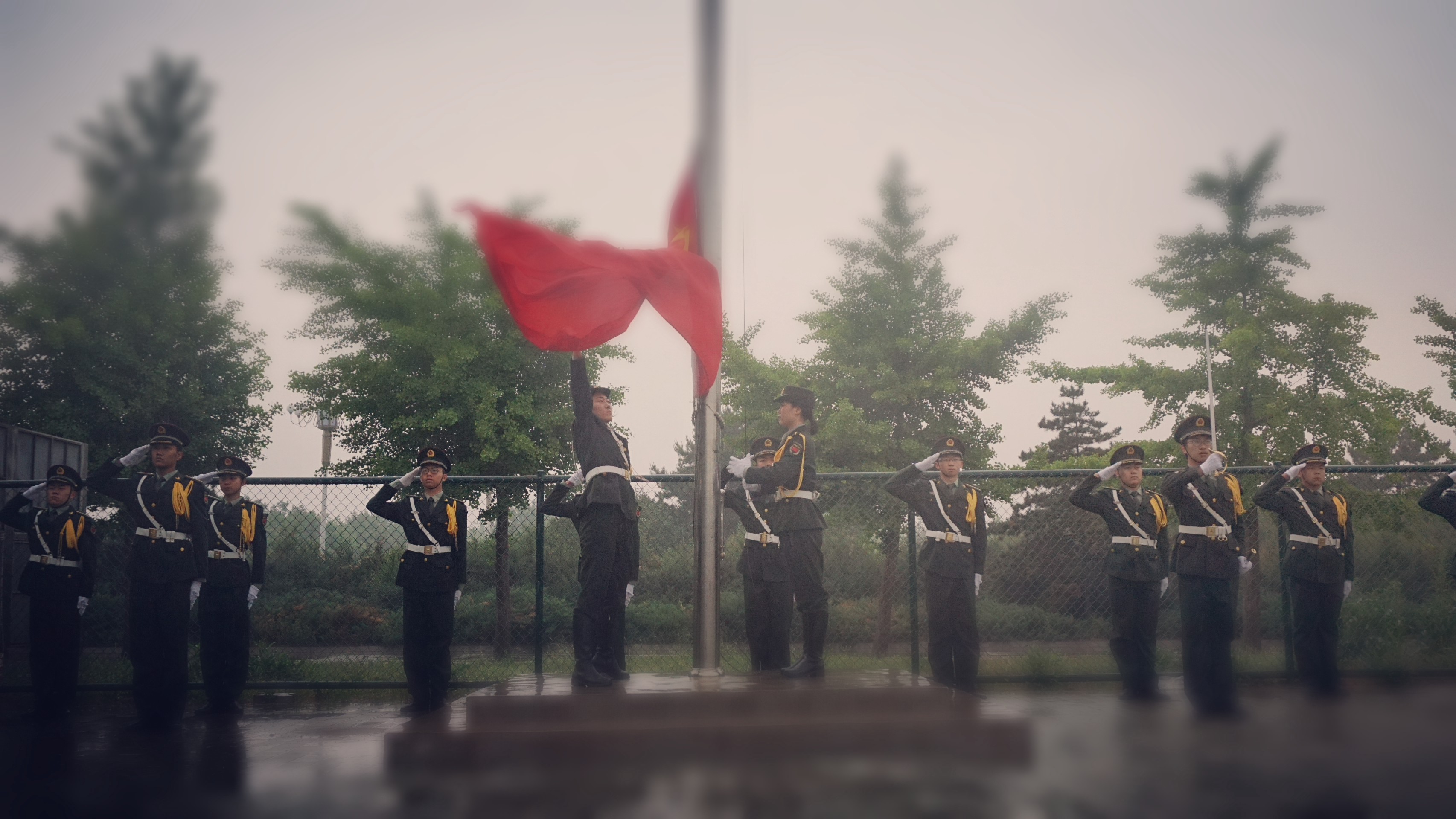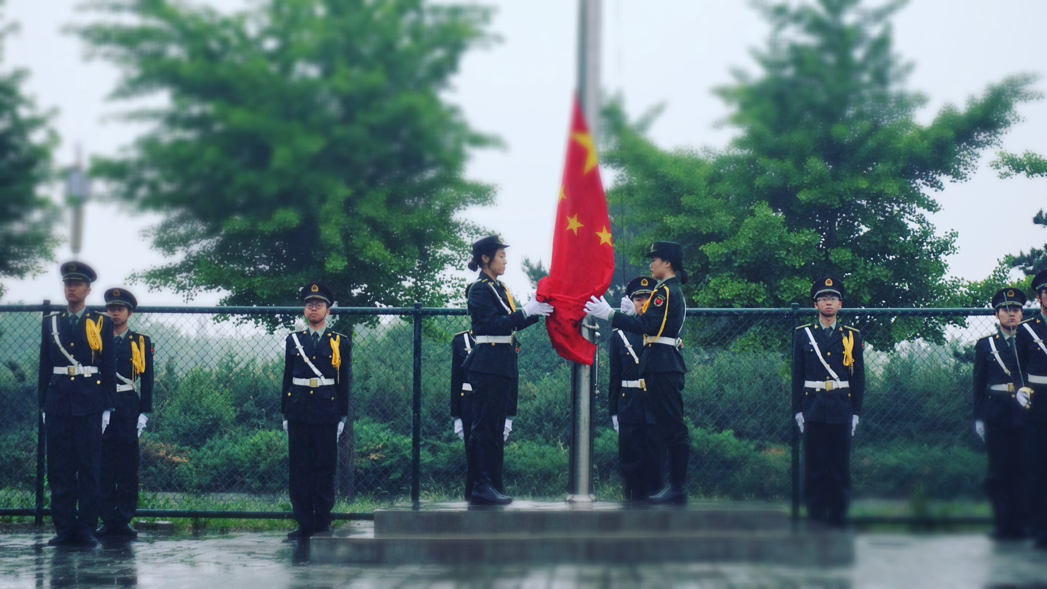 5月17日清晨7:00,普通的一天,不普通的是阴雨天气。为了欢送即将毕业的国旗班老队员,国旗护卫队在操场上举行升旗仪式。参加此次升旗仪式的有大一新一届队员、即将毕业的国护老队员、团委朱孟娟老师。此次仪式不仅是欢送仪式,也是国旗精神的传承礼。一样的出旗,不一样的情感;一样的正步,不一样的心情。